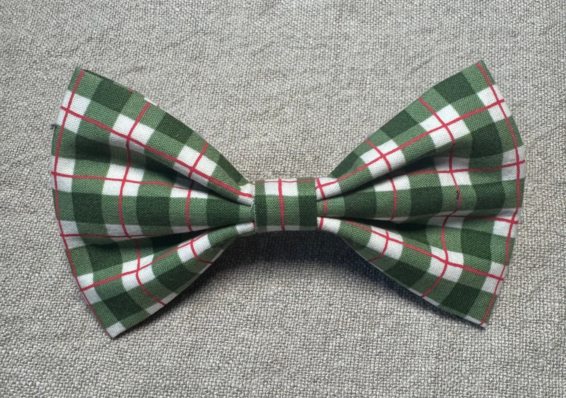 Your pup will look so festive in this green, white and red bow tie! Perfect for family photos.